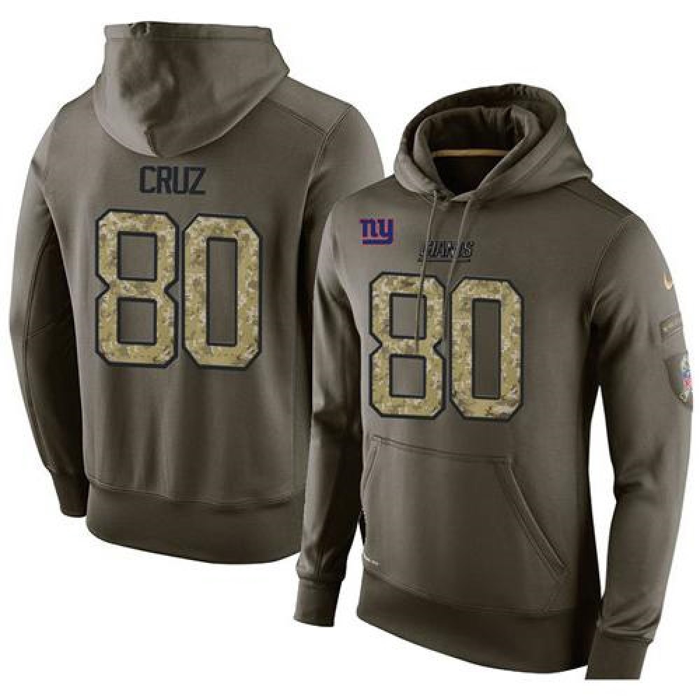 NFL Men's New York Giants #80 Victor Cruz Stitched Green Olive Salute To Service KO Performance Hoodie
