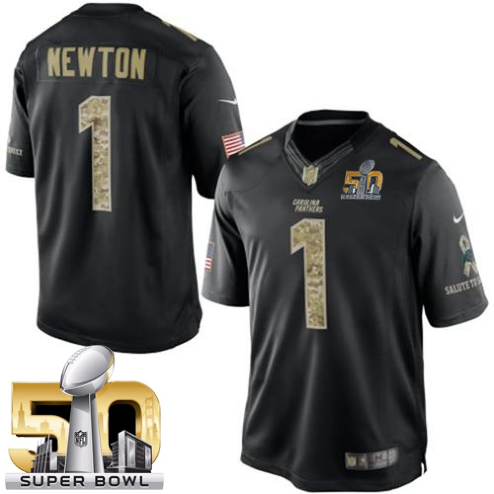 Panthers #1 Cam Newton Black Super Bowl 50 Men's Stitched NFL Limited Salute to Service Jersey