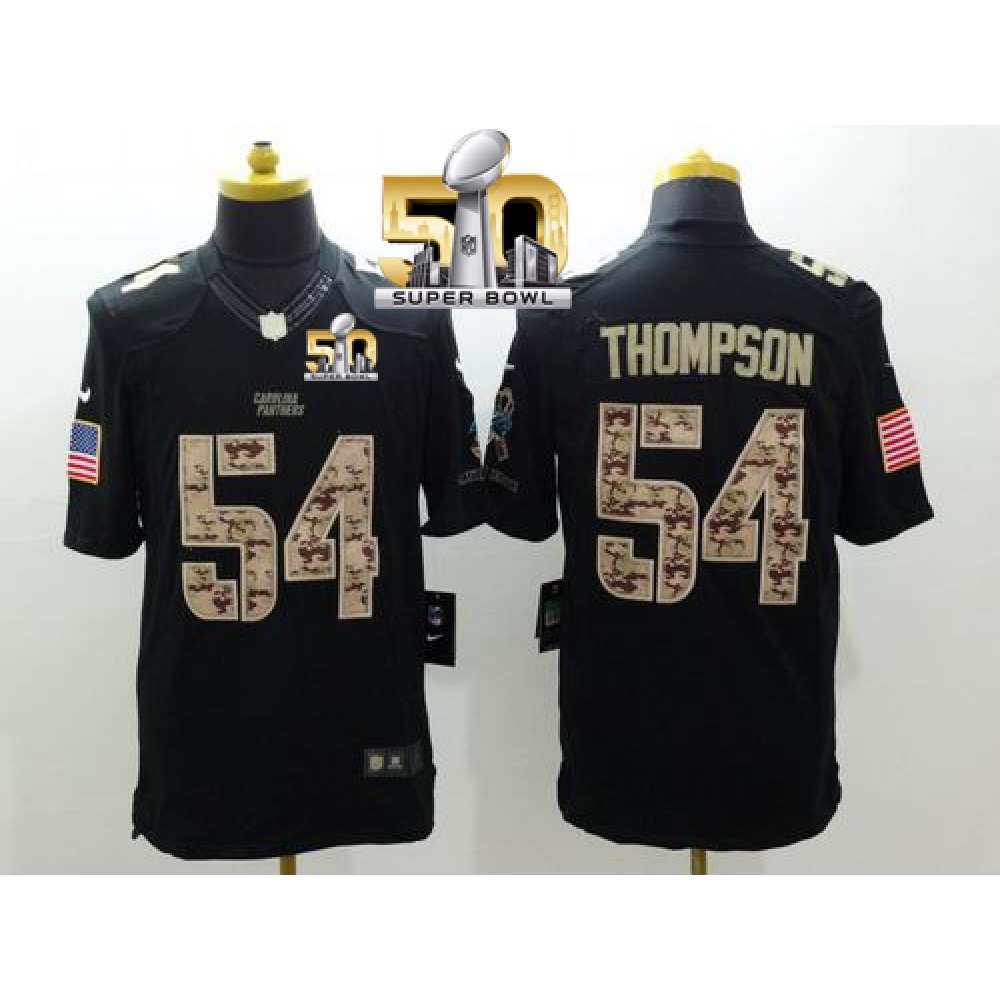 Panthers #54 Shaq Thompson Black Super Bowl 50 Men's Stitched NFL Limited Salute to Service Jersey