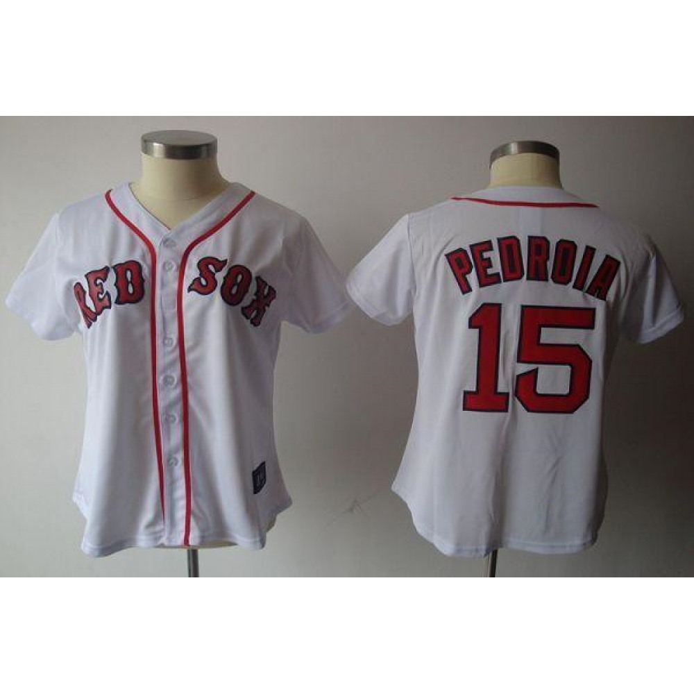 Red Sox #15 Dustin Pedroia White Women's Fashion Stitched MLB Jersey