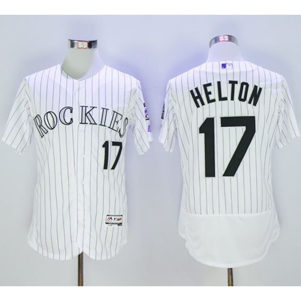 Rockies #17 Todd Helton White Strip Flexbase Authentic Collection Stitched MLB Jersey