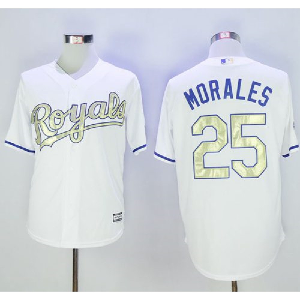 Royals #25 Kendrys Morales White New Cool Base 2015 World Series Champions Gold Program Stitched MLB Jersey