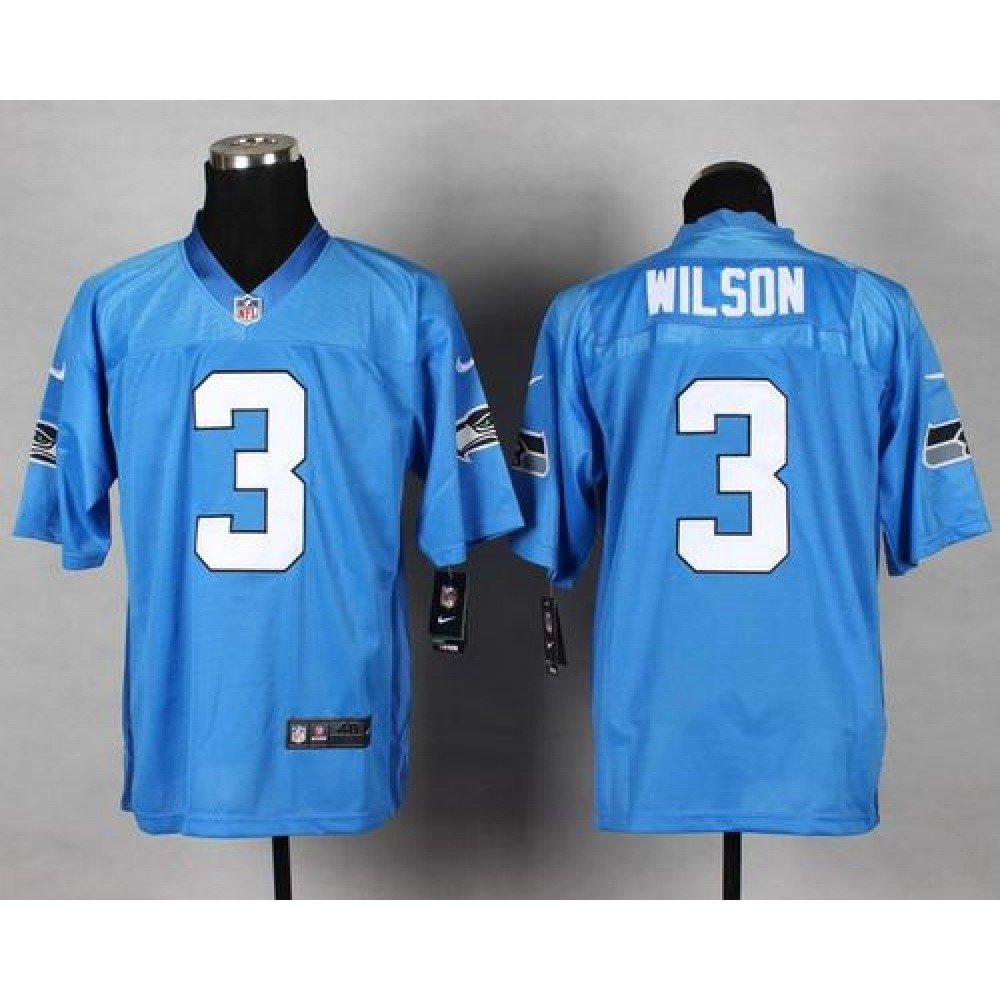 Seahawks #3 Russell Wilson Light Blue Men's Stitched NFL Elite Jersey