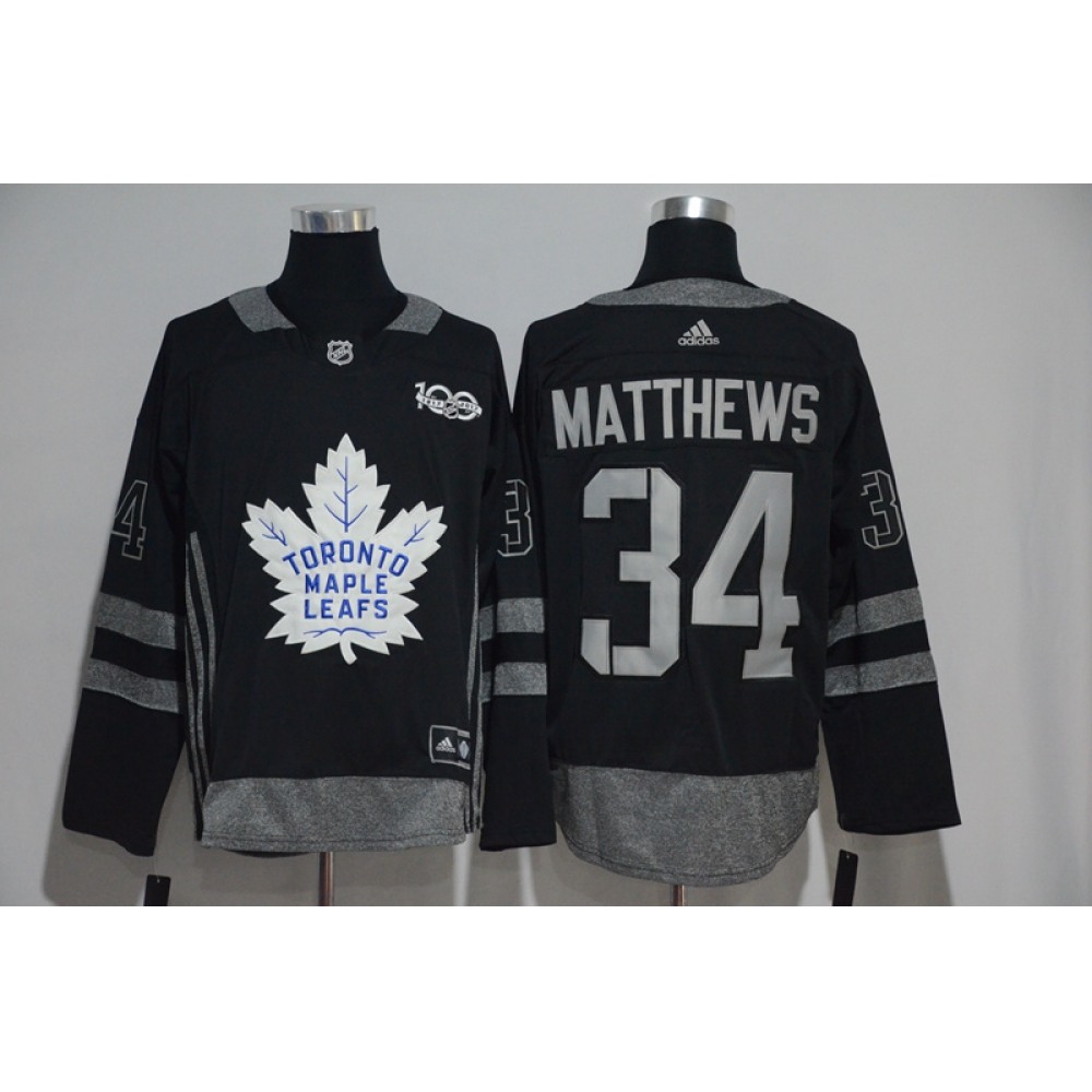 Toronto Maple Leafs #34 Auston Matthews Black Men's 1917-2017 100th Anniversary Stitched NHL Jersey