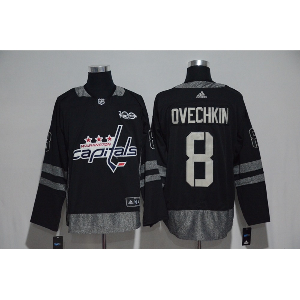 Men's Washington Capitals #8 Alexander Ovechkin Black 1917-2017 100th Anniversary Jersey