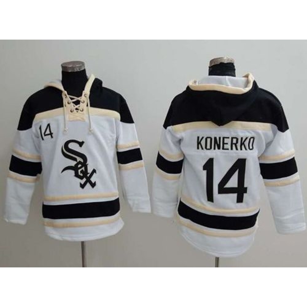 White Sox #14 Paul Konerko White Sawyer Hooded Sweatshirt MLB Hoodie