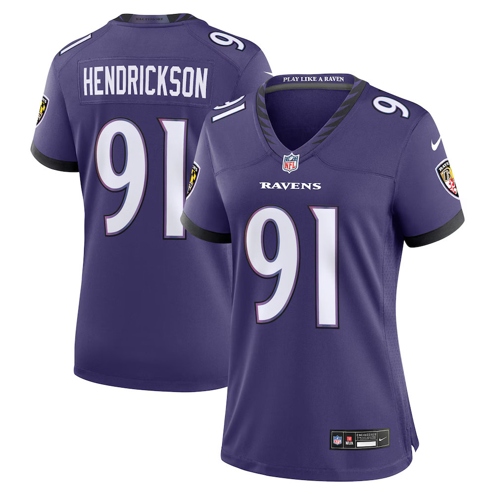 Women's Baltimore Ravens #91 Trey Hendrickson Nike Purple Team Game Jersey