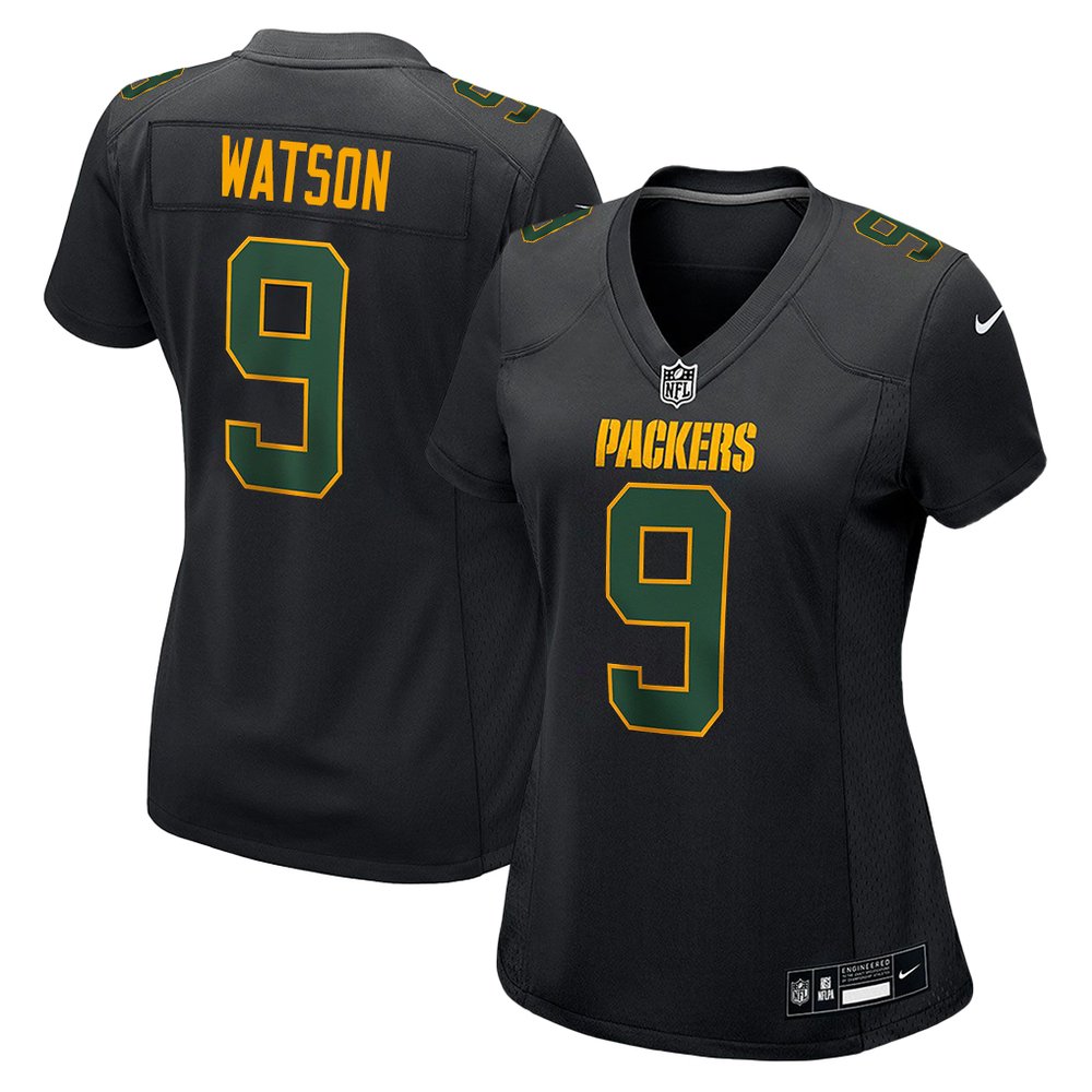 Women's Green Bay Packers #9 Christian Watson Carbon Black Fashion Game Jersey