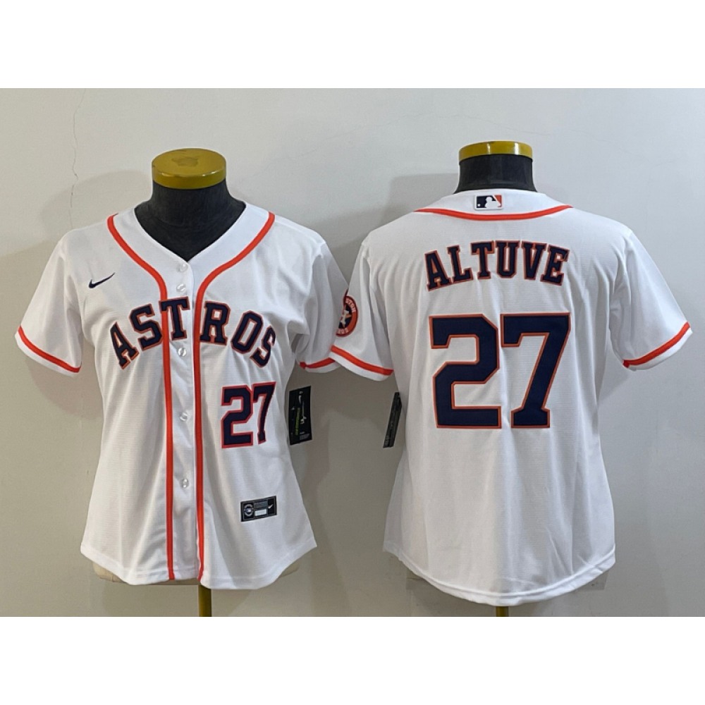 Women's Houston Astros #27 Jose Altuve White With Patch Cool Base Stitched Baseball Jersey(Run Small)