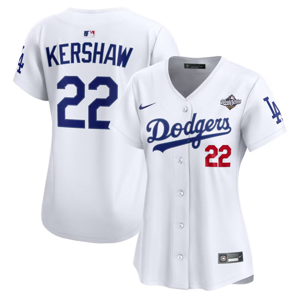 Women's Los Angeles Dodgers #22 Clayton Kershaw Nike White 2025 World Series Home Limited Jersey