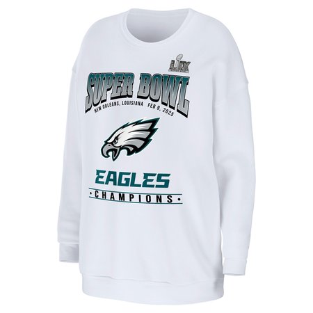 Women's Philadelphia Eagles WEAR by Erin Andrews White Super Bowl LIX Champions Fleece Pullover Sweatshirt