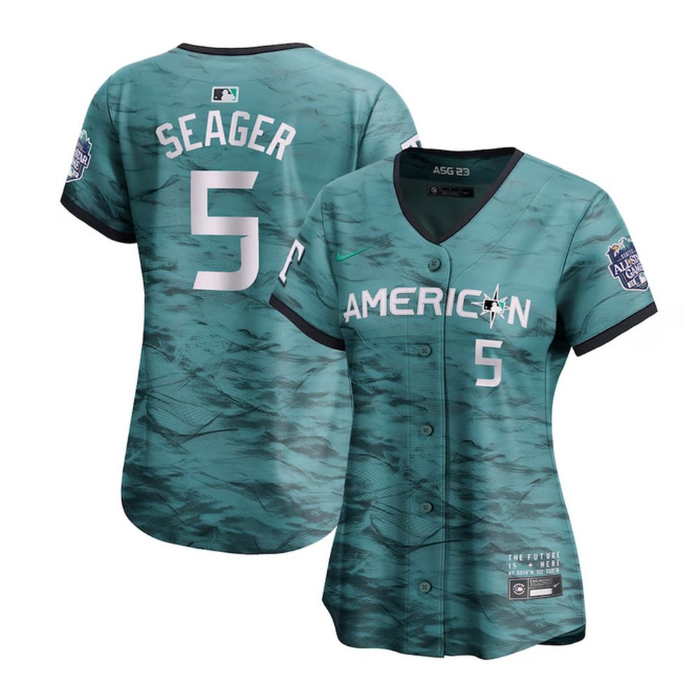 Women's Texas Rangers #5 Corey Seager Teal 2023 All-star Stitched Baseball Jersey(Run Small)