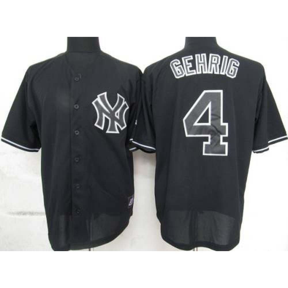 Yankees #4 Lou Gehrig Black Fashion Stitched MLB Jersey