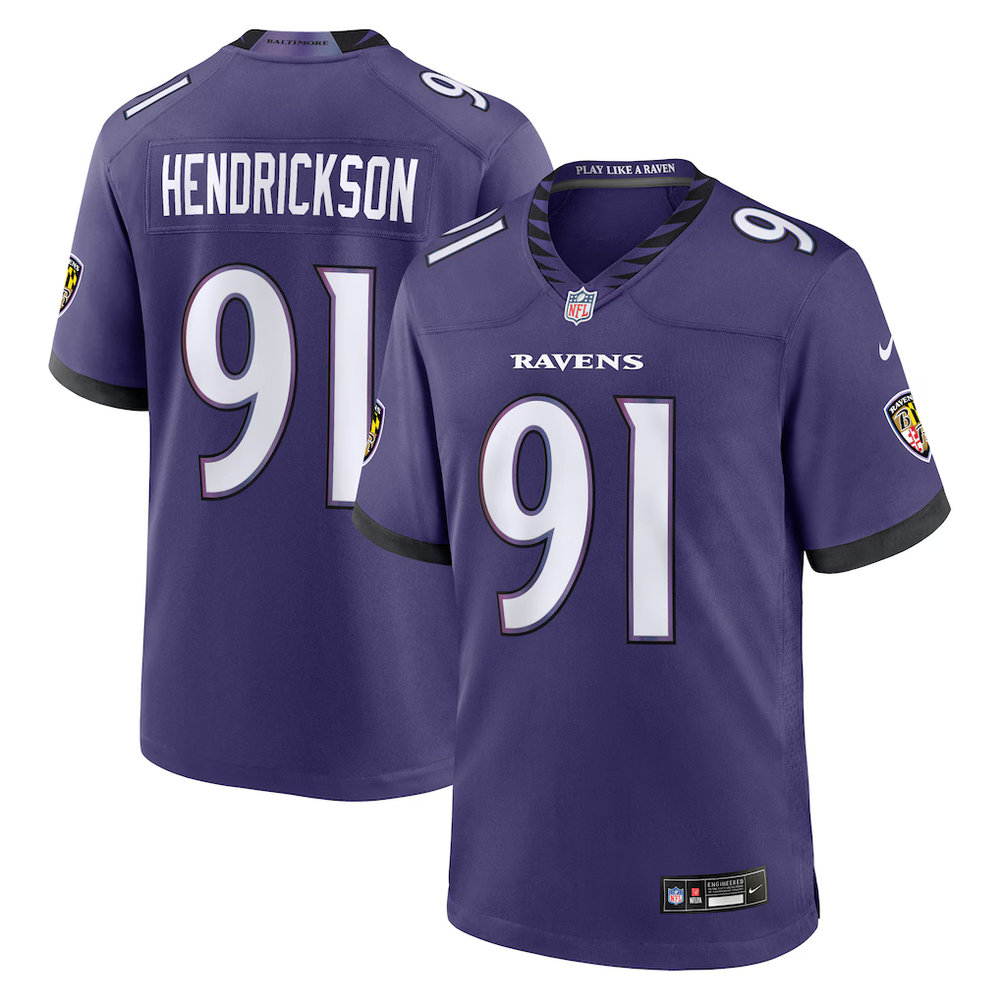 Men's Baltimore Ravens #91 Trey Hendrickson Nike Purple Alternate Game Jersey