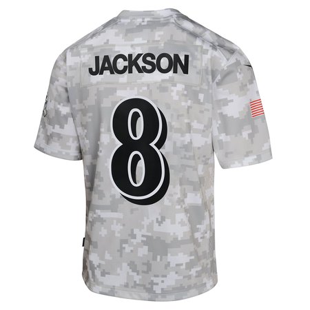 Youth Baltimore Ravens Lamar Jackson Arctic Camo 2024 Salute to Service Game Jersey