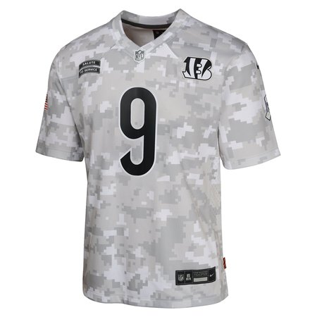 Youth Cincinnati Bengals Joe Burrow Arctic Camo 2024 Salute to Service Game Jersey