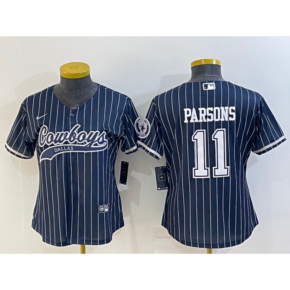 Youth Dallas Cowboys #11 Micah Parsons Navy With Patch Cool Base Stitched Baseball Jersey