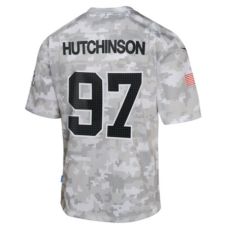 Youth Detroit Lions #97 Aidan Hutchinson Arctic Camo 2024 Salute to Service Game Jersey