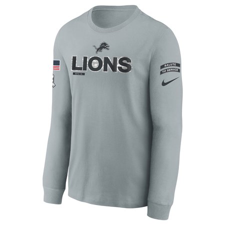 Youth Detroit Lions Gray 2024 Salute To Service Long Sleeve T-Shirt