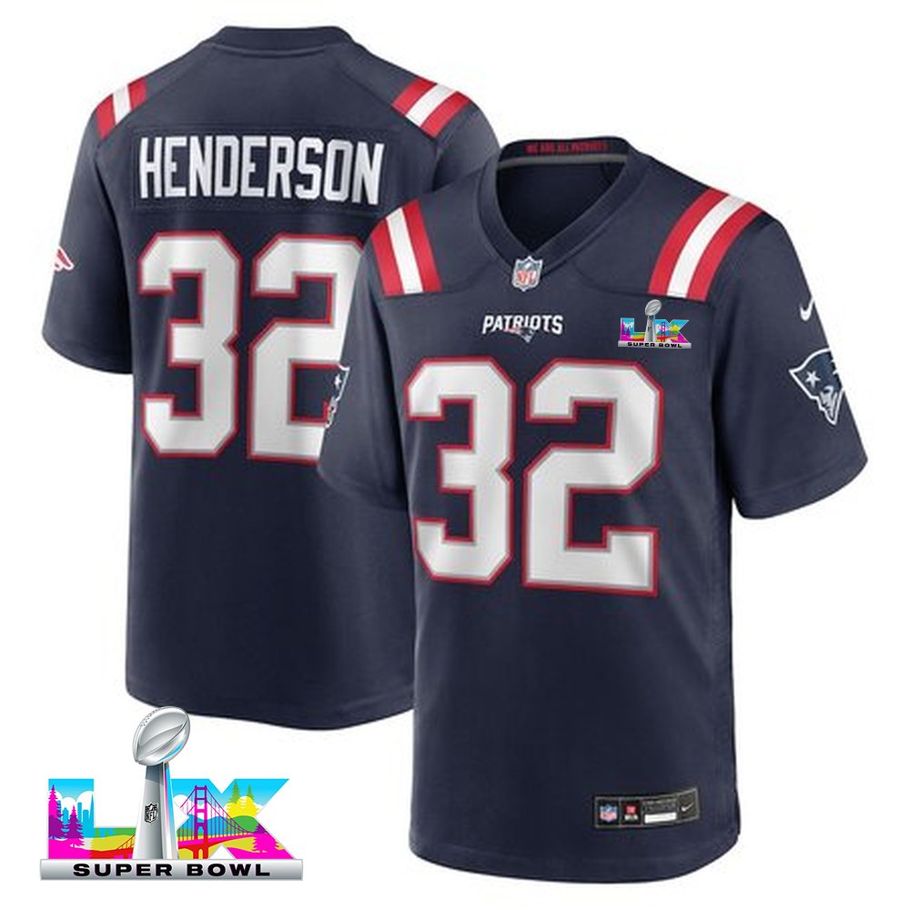Men's New England Patriots #32 TreVeyon Henderson Nike Navy Super Bowl LX Game Jersey