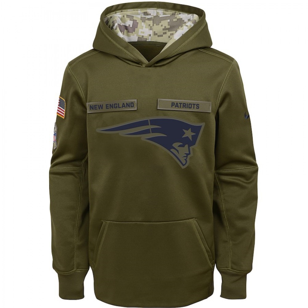 Youth New England Patriots Olive Salute to Service Pullover Performance NFL Hoodie