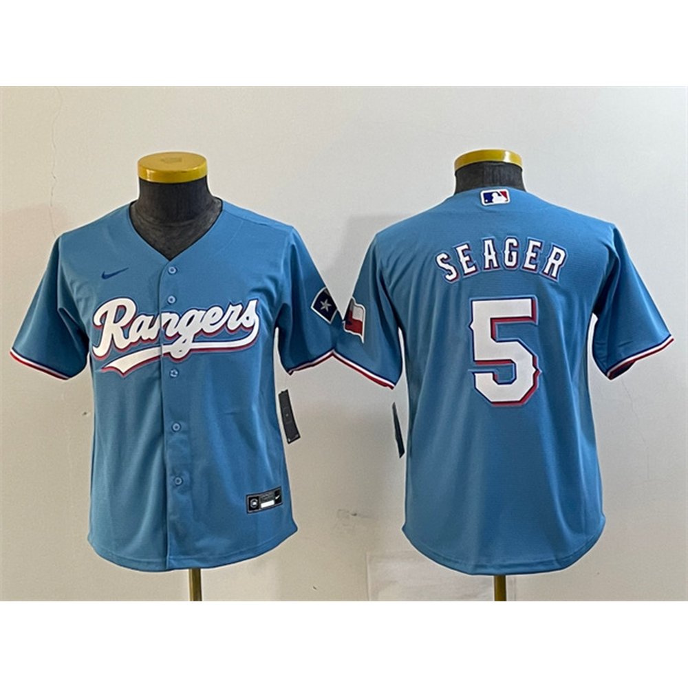 Youth Texas Rangers #5 Corey Seager Blue With Patch Stitched Baseball Jersey