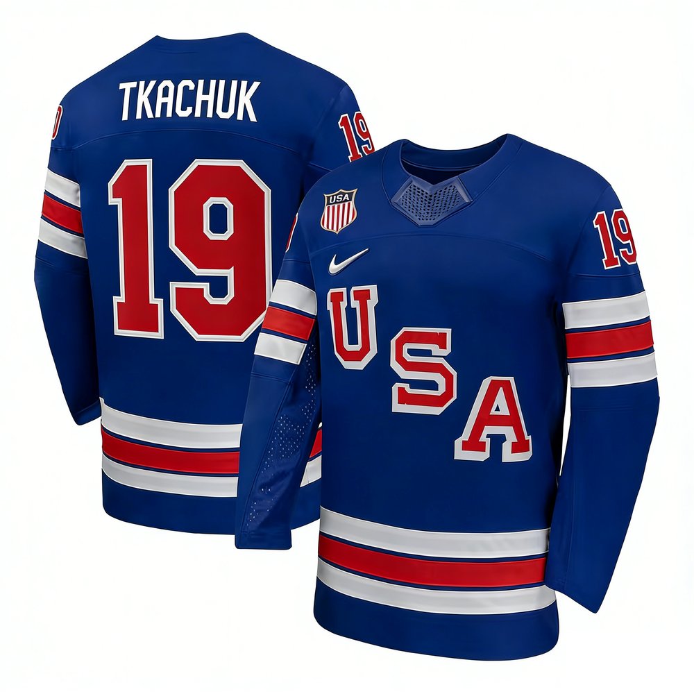 Men's USA Hockey #19 Matthew Tkachuk Royal 2026 Home Replica Jersey